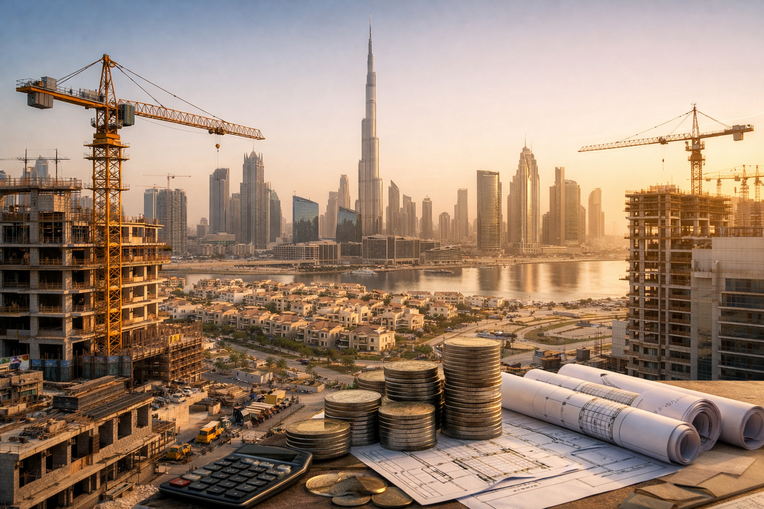 Golden hour in Dubai’s skyline and construction