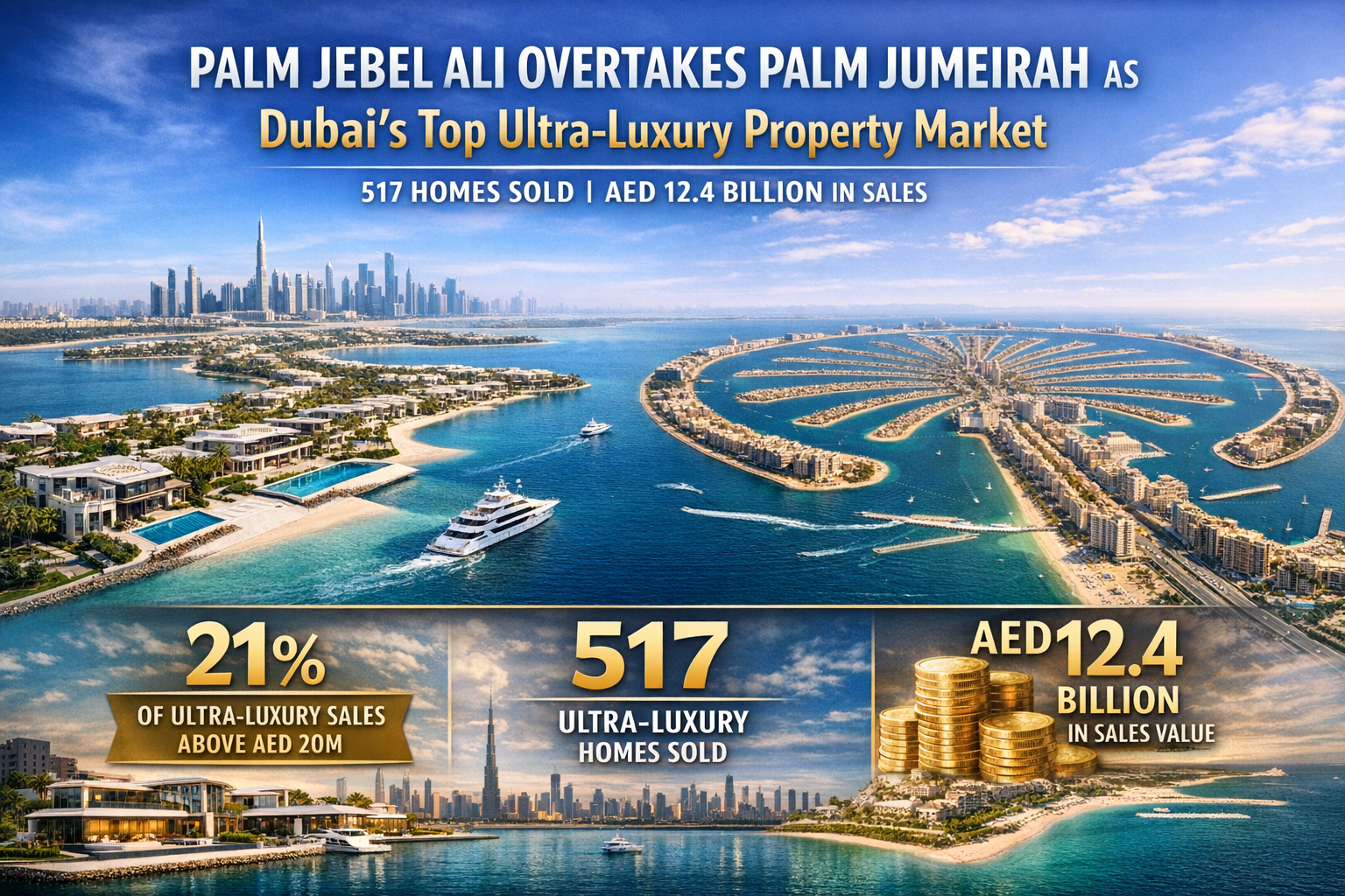 Dubai’s ultra-prime real estate landscape has entered a new phase of dominance, with Palm Jebel Ali surpassing Palm Jumeirah as the emirate’s leading ultra-luxury property market. Recent market data confirms that Palm Jebel Ali accounted for 21% of all ultra-luxury transactions above AED 20 million, with 517 homes sold and a staggering AED 12.4 billion in total sales value—the highest recorded by any residential location in Dubai.