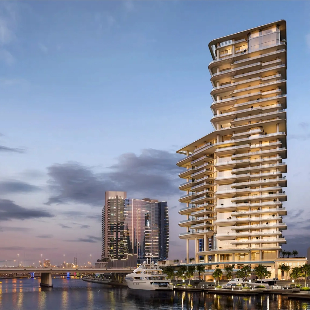With a prime location offering direct access to Downtown Dubai and seamless connectivity to major highways, Vela Viento provides the perfect balance between vibrant city life and serene waterfront tranquility. Rising gracefully with 45-storey twin towers designed by the award-winning Foster + Partners, the development features breathtaking architecture, smooth curves, and horizontal lines that harmoniously integrate with Dubai’s skyline, including views of the Burj Khalifa.