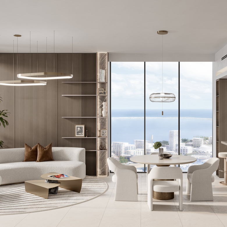 This exclusive development features a curated collection of stylish apartments with spacious layouts, high-end finishes, and stunning views of Dubai’s skyline and marina. Each residence is thoughtfully designed to reflect coastal sophistication, providing a peaceful yet luxurious environment tailored for comfort and relaxation.